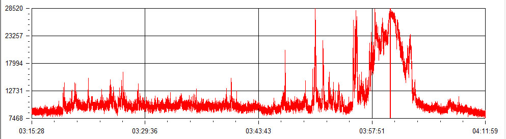 The image below, taken from Astronomy Log shows a solar flare as it would be seen on computer charting software: